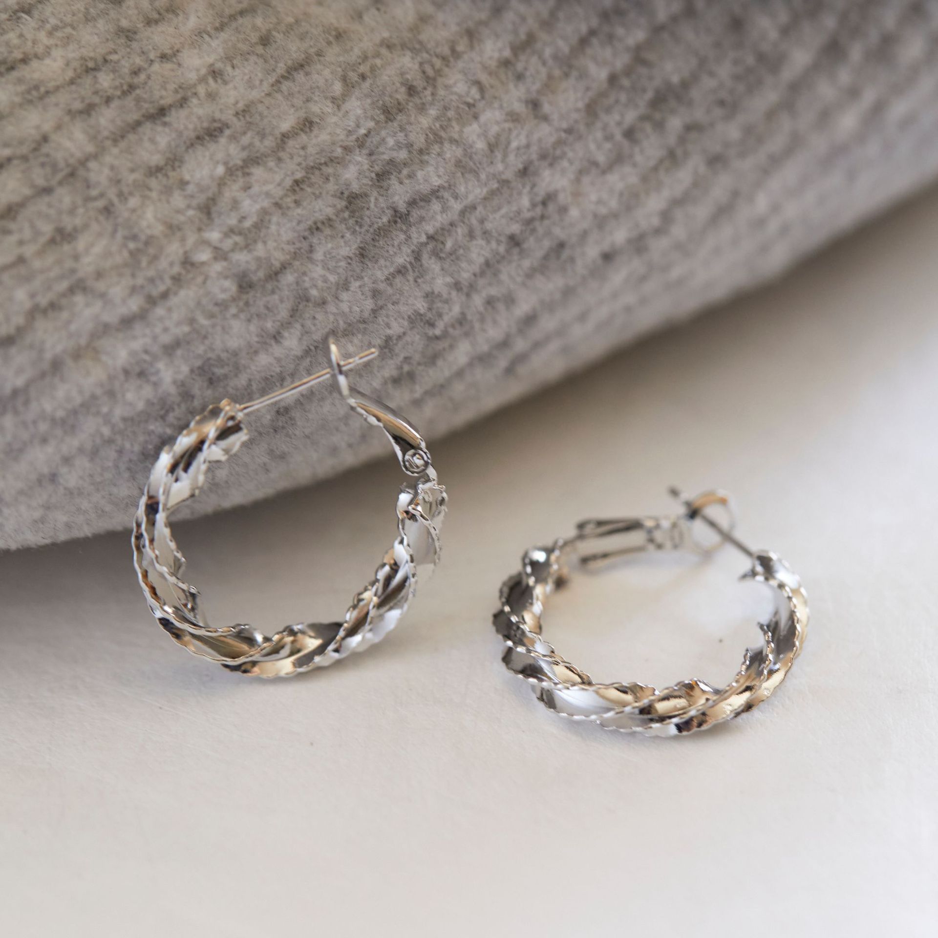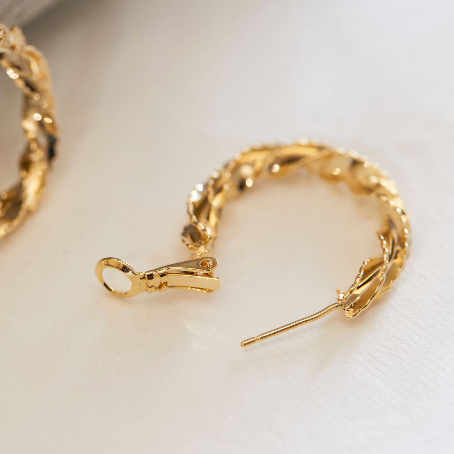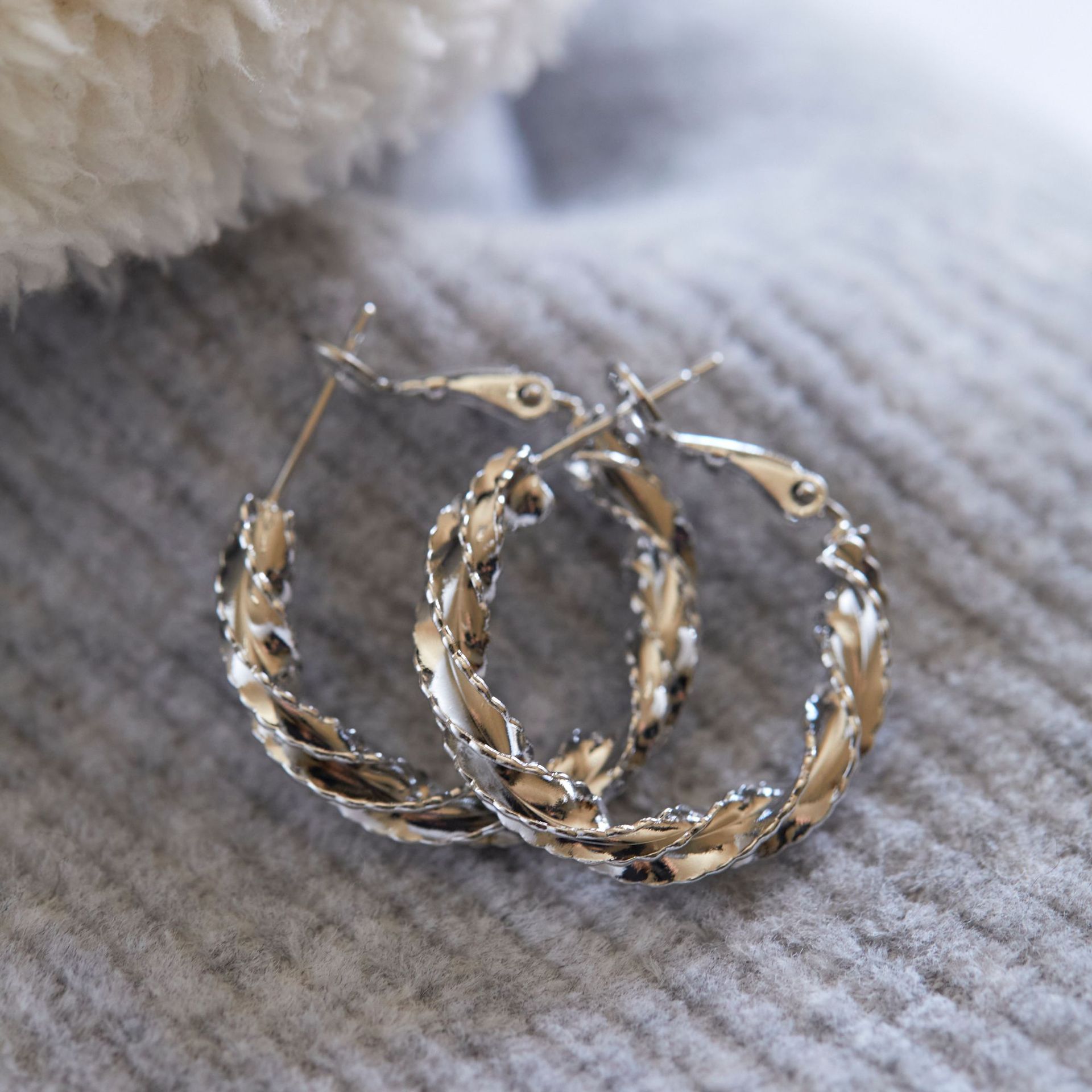 Colors: A pair of silver stud earrings, a pair of silver clip-on earrings, a pair of gold stud earrings, a pair of gold clip-on earrings